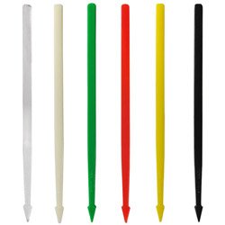 Item #: 04-0230. 3 1/2" Arrow Picks. Assorted colors include: Black, Green, Ivory, Yellow, Red